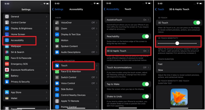 This feature of the iPhone can also be the reason for this issue. To see if this is the reason, change the sensitivity of the 3D Touch. First, go to Settings> General > Accessibility. Under Accessibility, choose "3D Touch" and change its sensitivity.